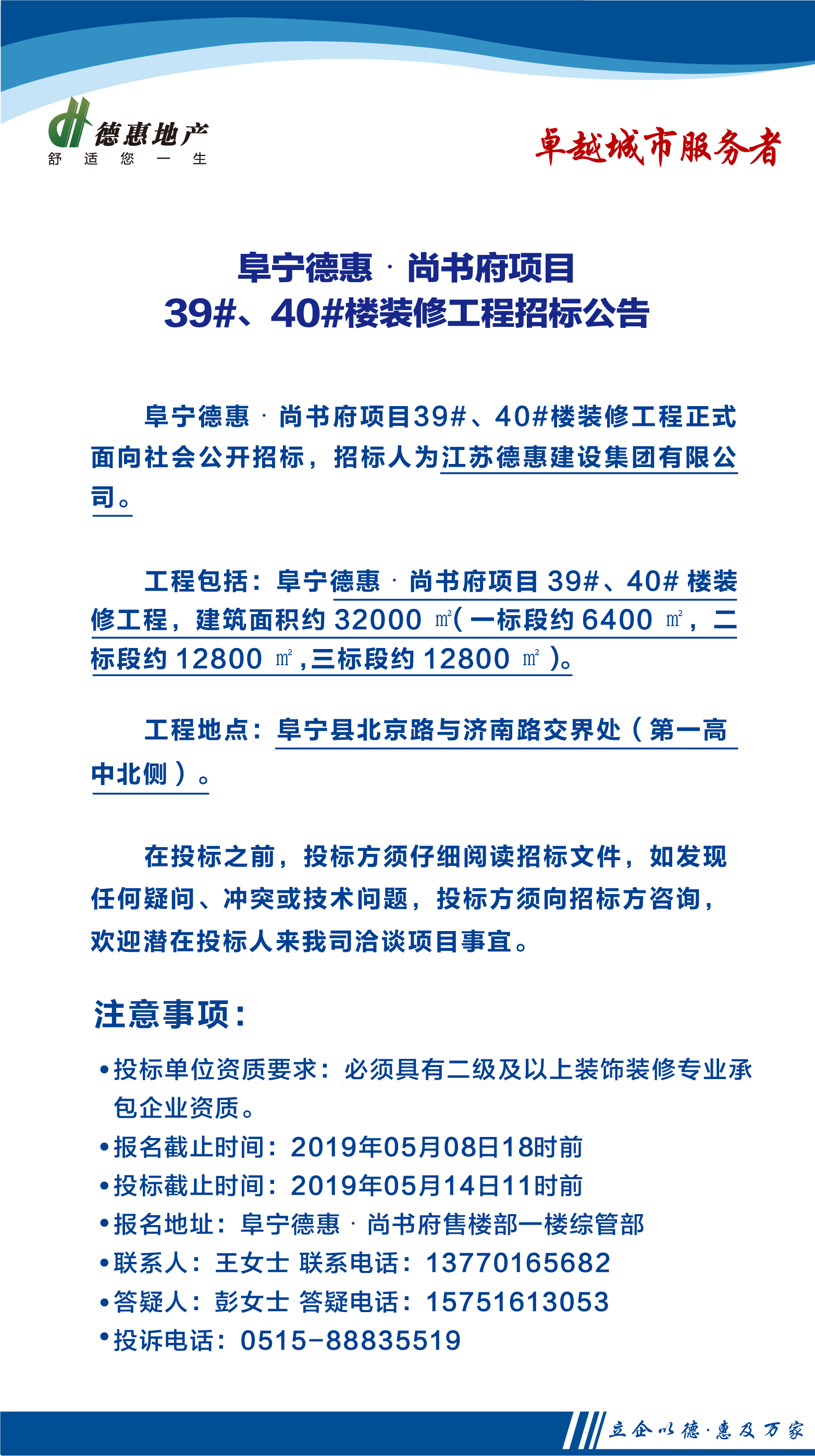 阜寧德惠·尚書府項目39#、40#樓裝修工程招標公告