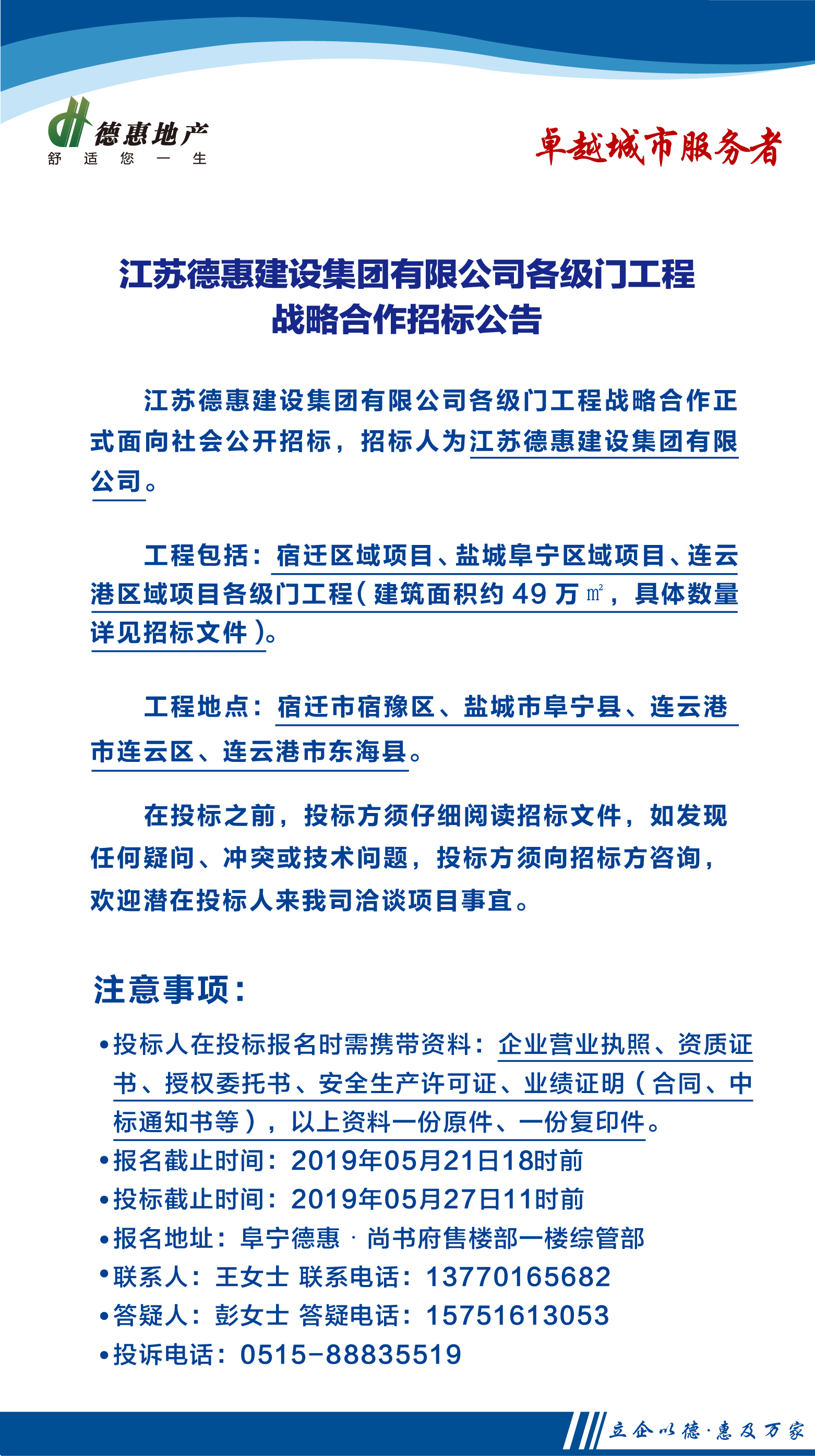 江蘇德惠建設集團有限公司各級門工程戰(zhàn)略合作招標公告