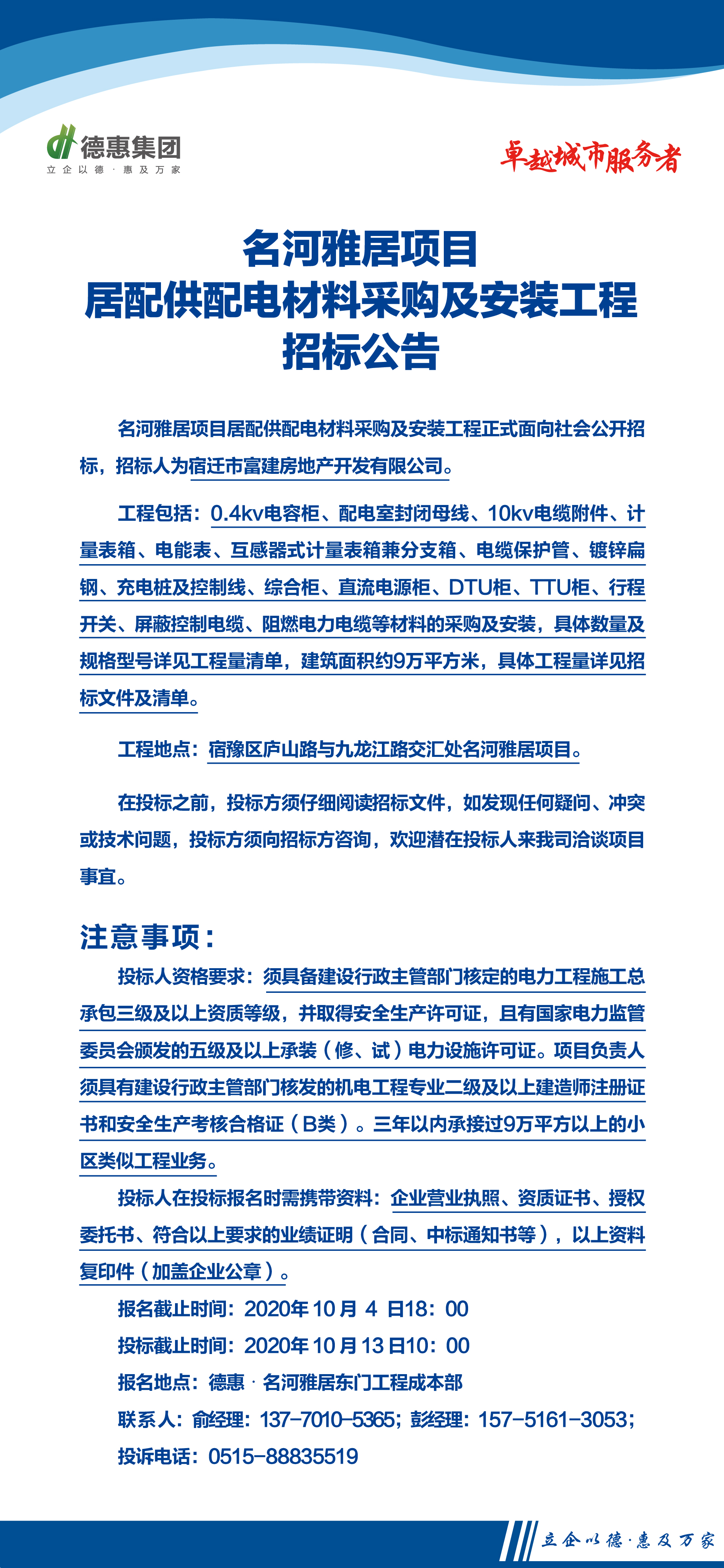 名河雅居供配電材料采購及安裝工程招標公告