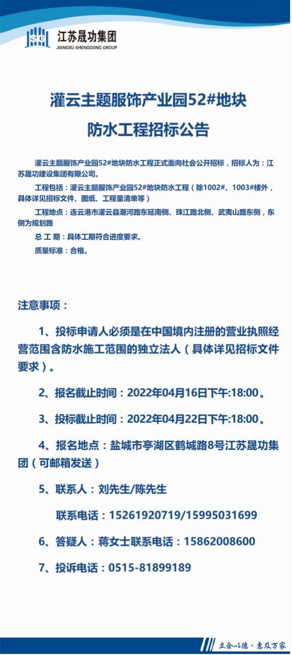 灌云主題服飾產(chǎn)業(yè)園52#地塊防水專業(yè)分包工程