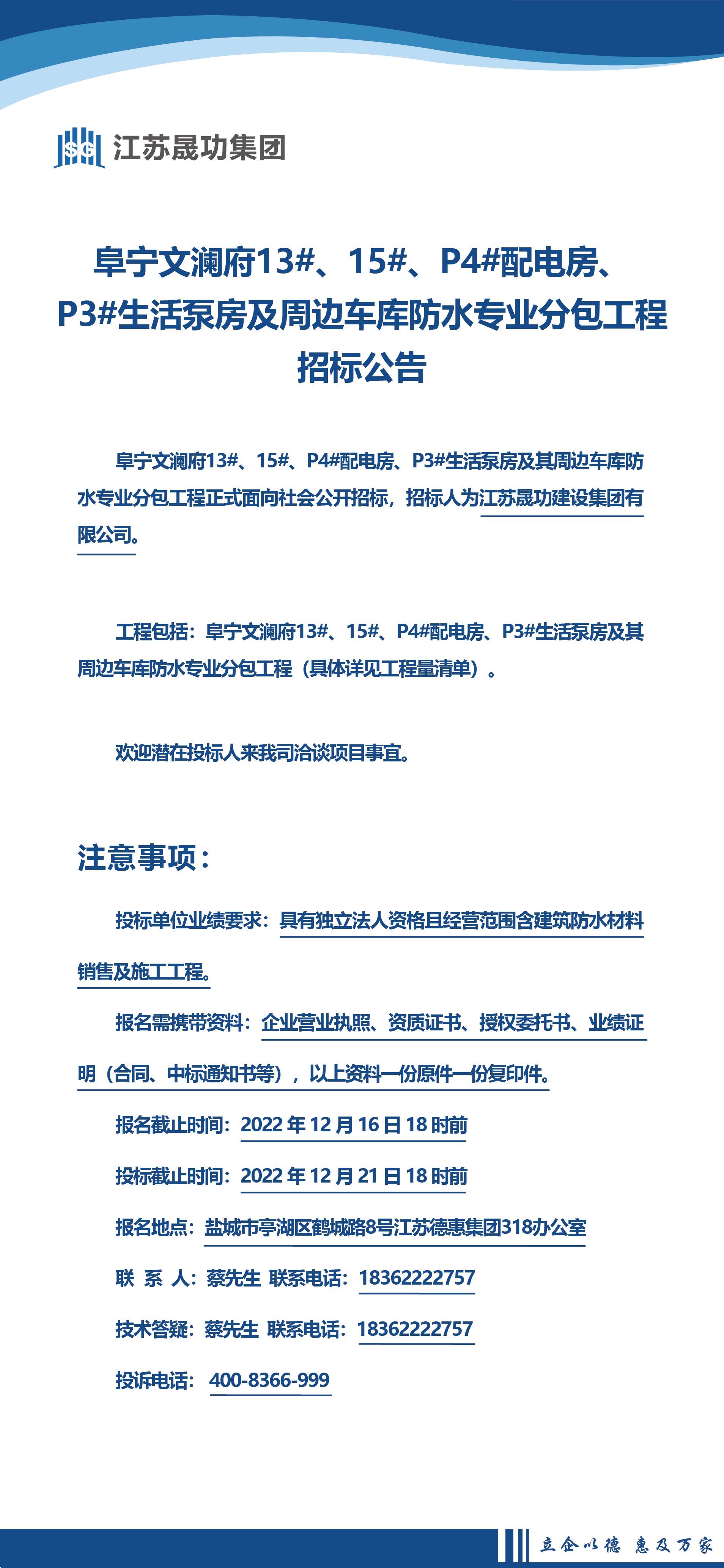阜寧縣文瀾府二期13#、15#、P4#開(kāi)閉所配電房、P3#生活泵房及其周邊車(chē)庫(kù)防水專業(yè)分包工程