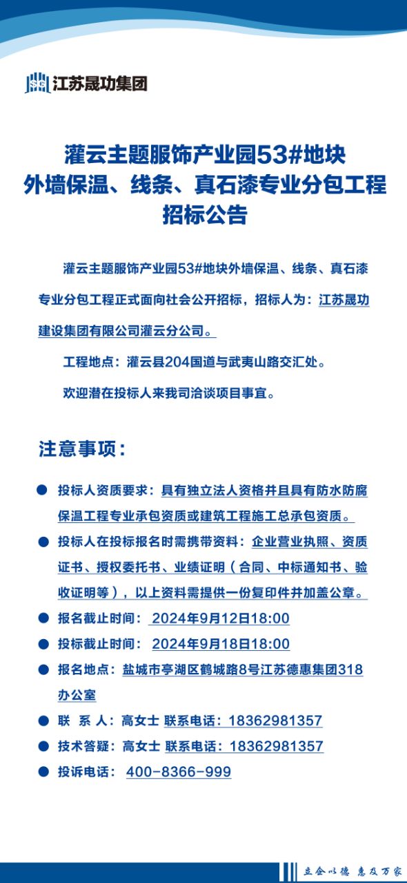 灌云主題服飾產(chǎn)業(yè)園53#地塊外墻保溫、線條、真石漆專業(yè)分包工程