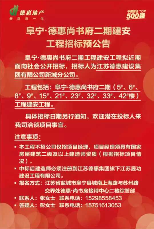 阜寧德惠·尚書(shū)府二期建安工程招標(biāo)公告