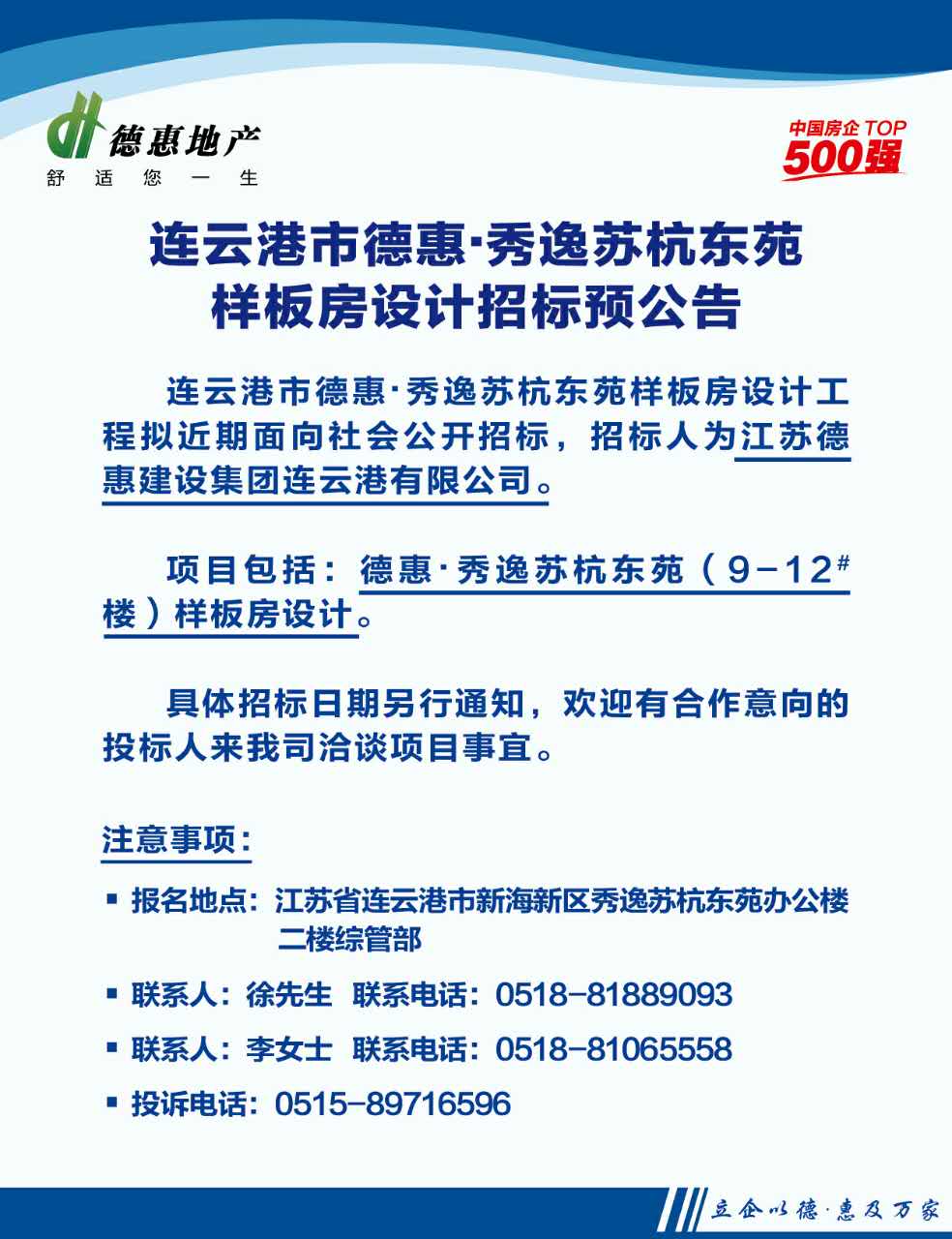 連云港德惠·秀逸蘇杭東苑樣板房設(shè)計招標(biāo)預(yù)公告