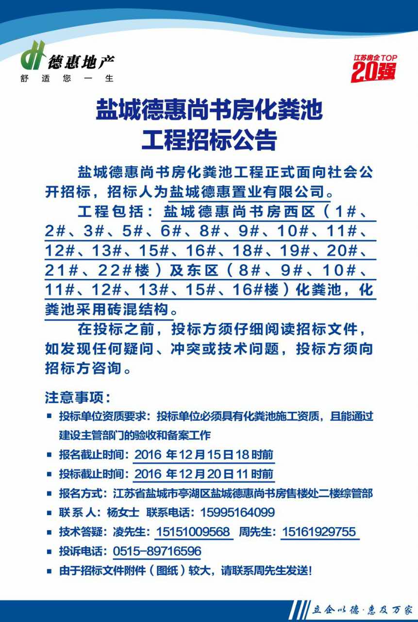 鹽城德惠尚書房西區(qū)一期、二期景觀綠化工程招標公告