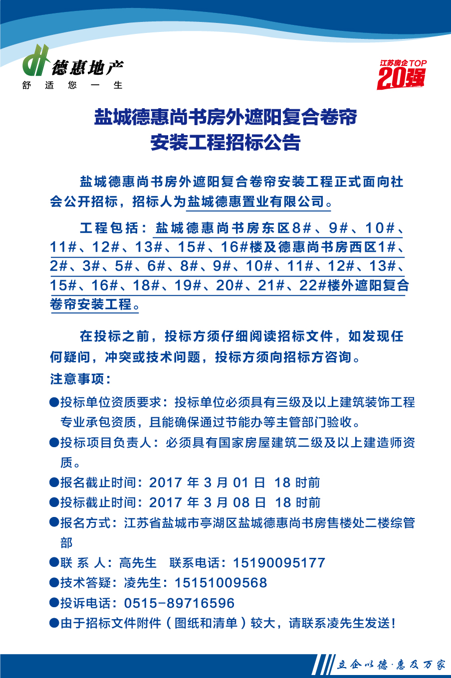 鹽城德惠尚書房外遮陽復(fù)合卷簾安裝工程招標(biāo)公告