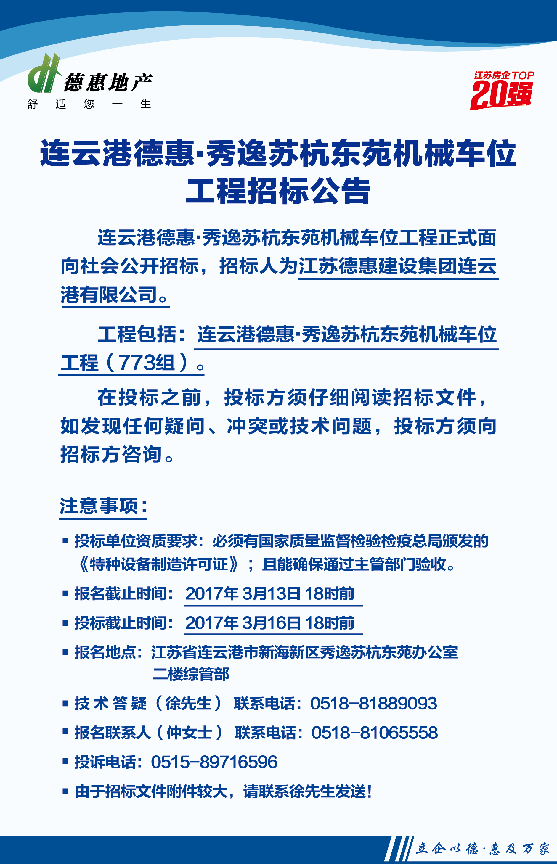 連云港秀逸蘇杭東苑機(jī)械停車位工程招標(biāo)公告