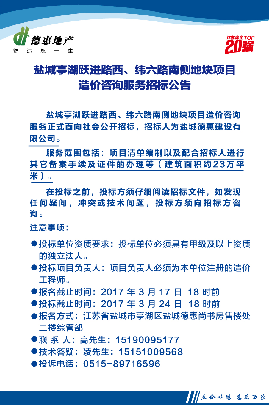 鹽城亭湖躍進路西、緯六路南側(cè)地塊項目造價咨詢服務(wù)招標公告