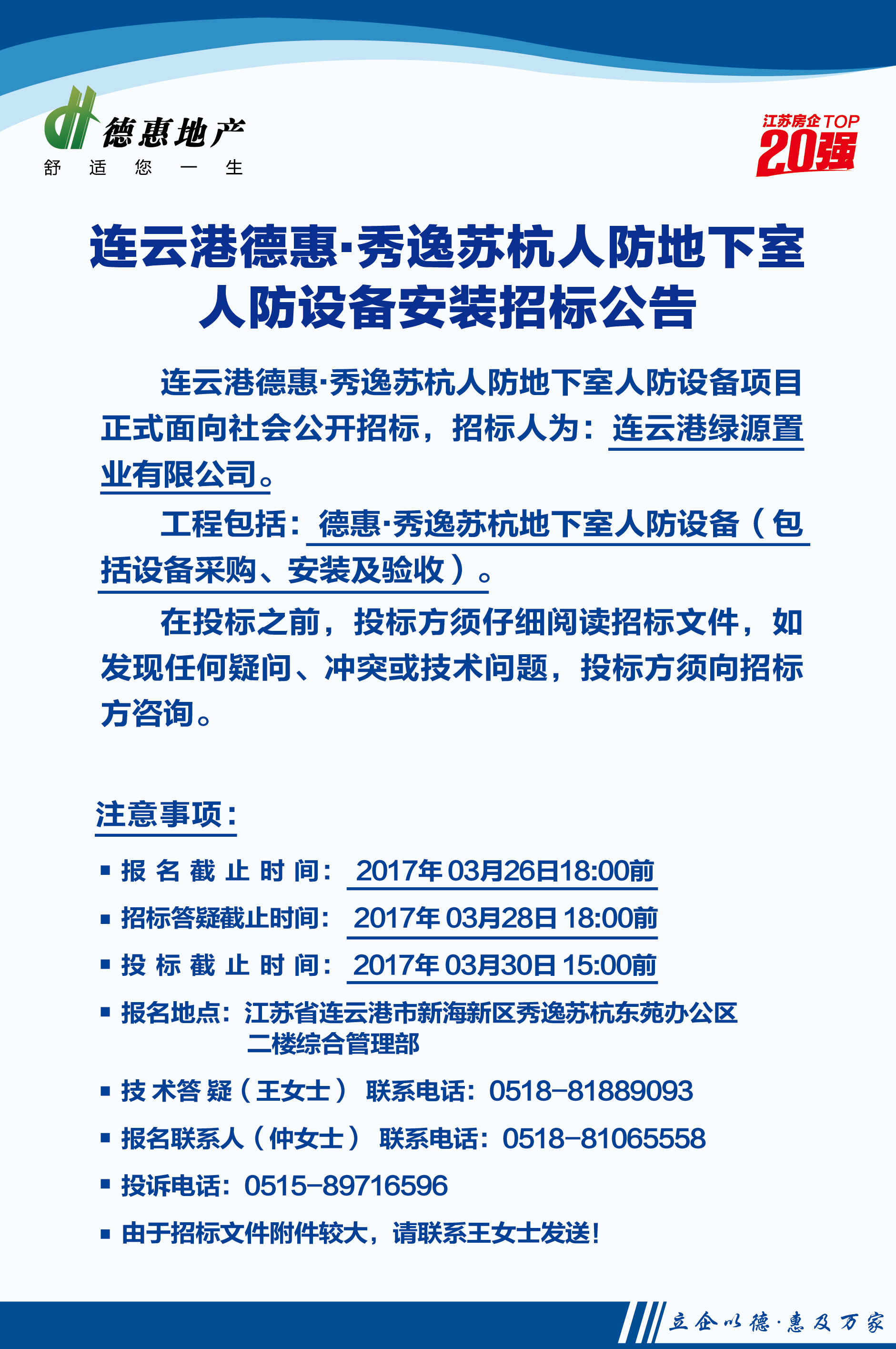 連云港德惠秀逸蘇杭人防地下室人防設(shè)備安裝招標(biāo)公告