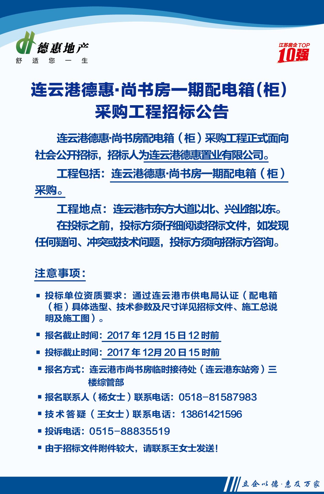 連云港德惠·尚書房一期配電箱(柜)采購工程招標(biāo)公告