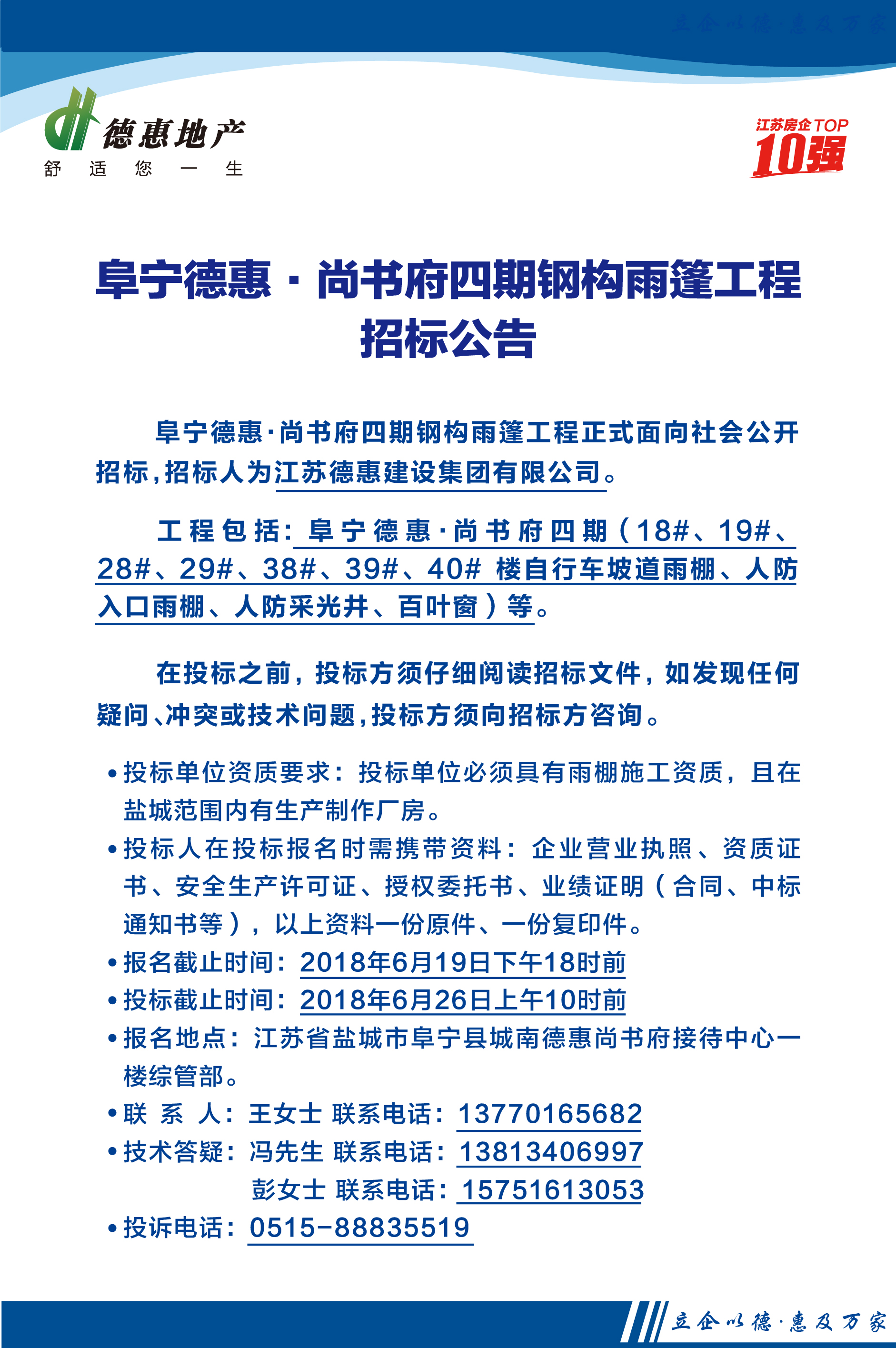 阜寧德惠·尚書府四期鋼構(gòu)雨棚工程招標公告