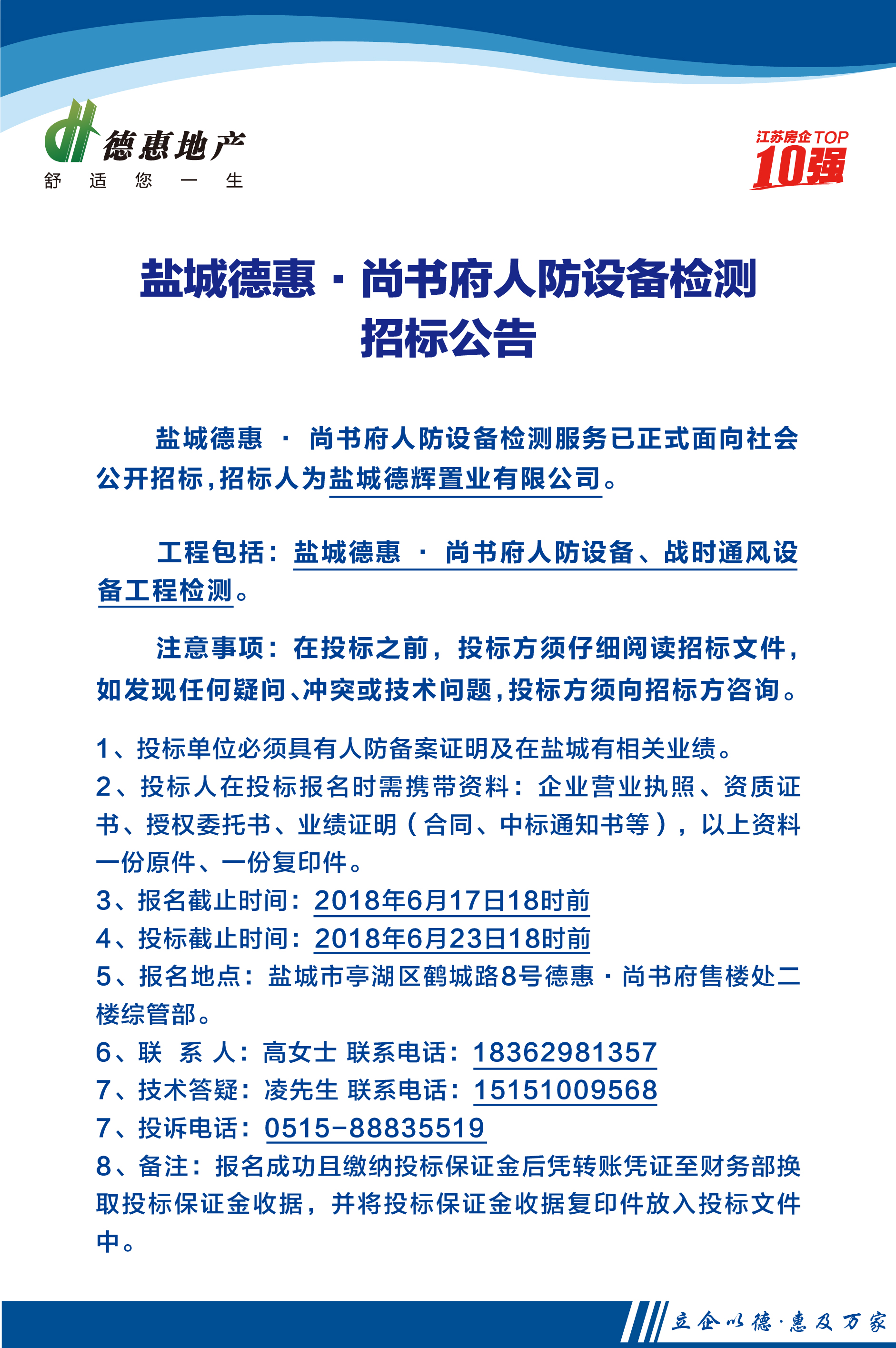 鹽城德惠·尚書府人防設(shè)備檢測(cè)招標(biāo)公告