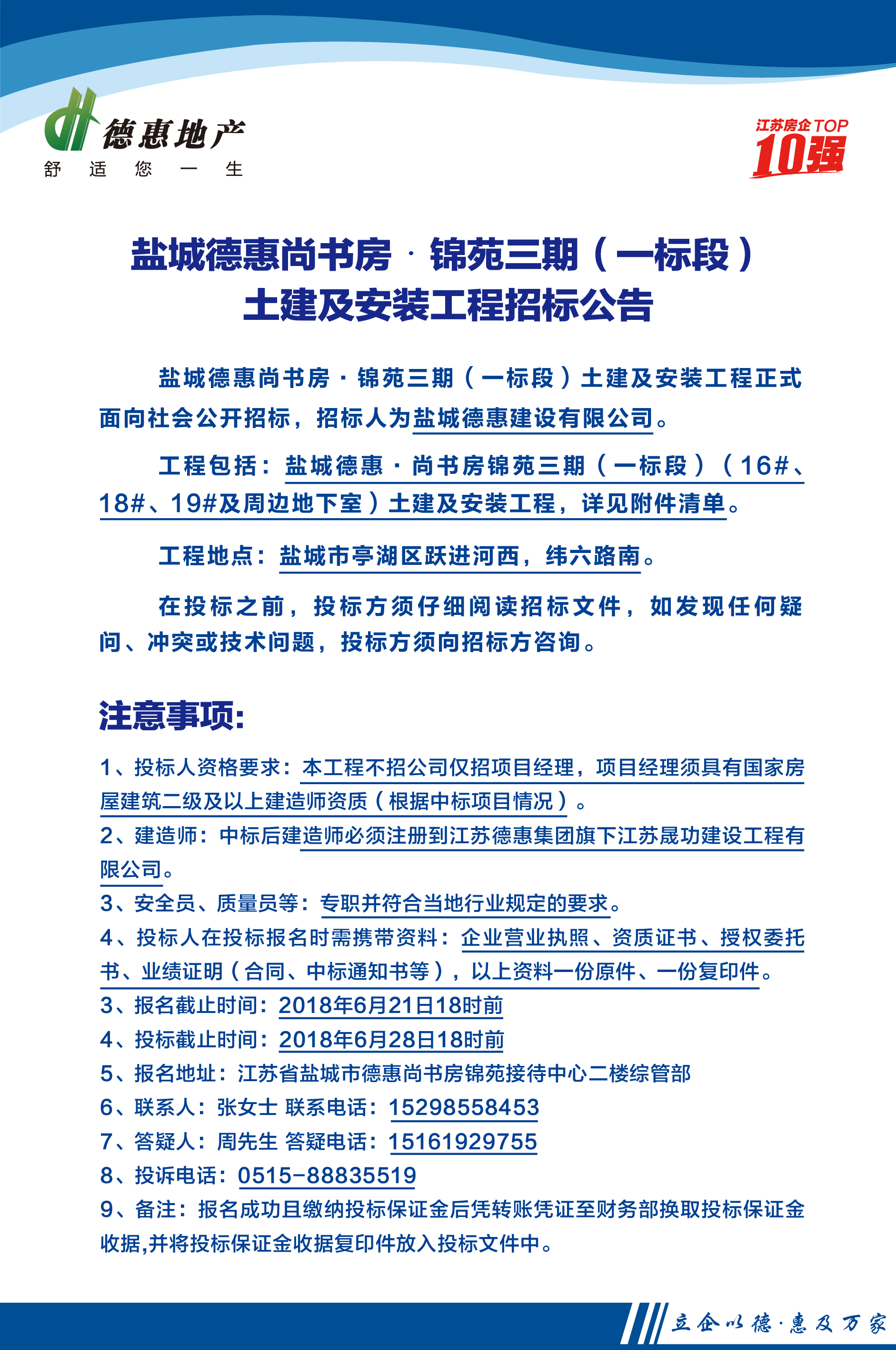 鹽城德惠·尚書(shū)房錦苑三期(一標(biāo)段)土建及安裝工程招標(biāo)公告