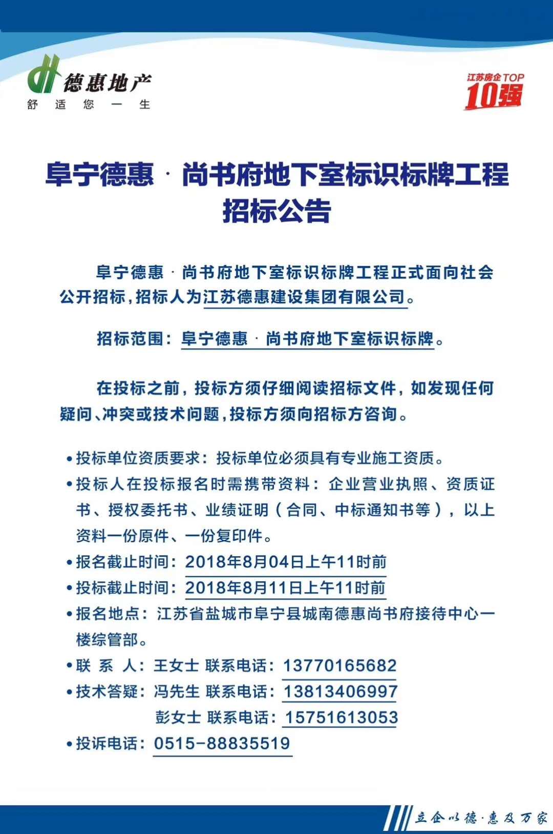 阜寧德惠·尚書府地下室標(biāo)識標(biāo)牌工程招標(biāo)公告