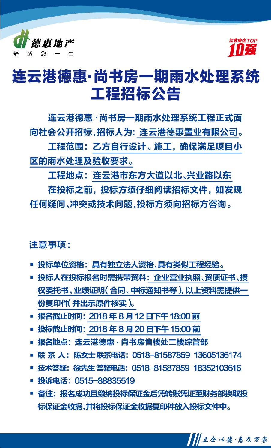 連云港德惠·尚書房一期雨水處理系統(tǒng)工程招標(biāo)公告