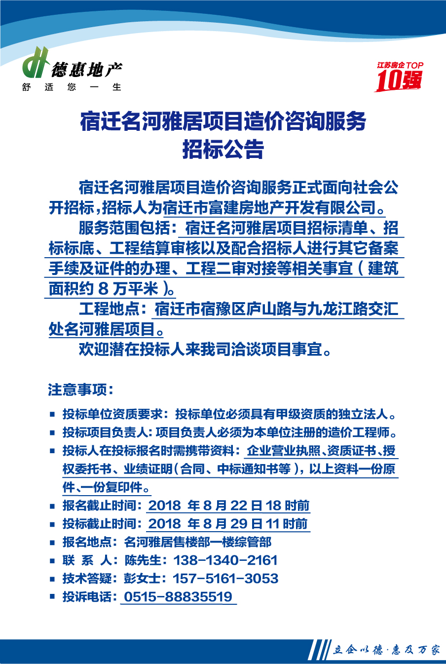 宿遷名河雅居項(xiàng)目造價(jià)咨詢服務(wù)招標(biāo)公告 |