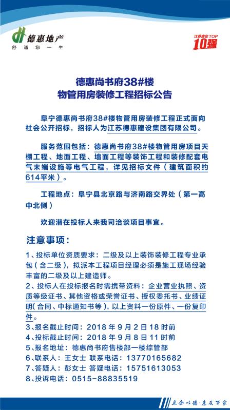 德惠尚書府38#樓物管用房裝修工程招標(biāo)公告