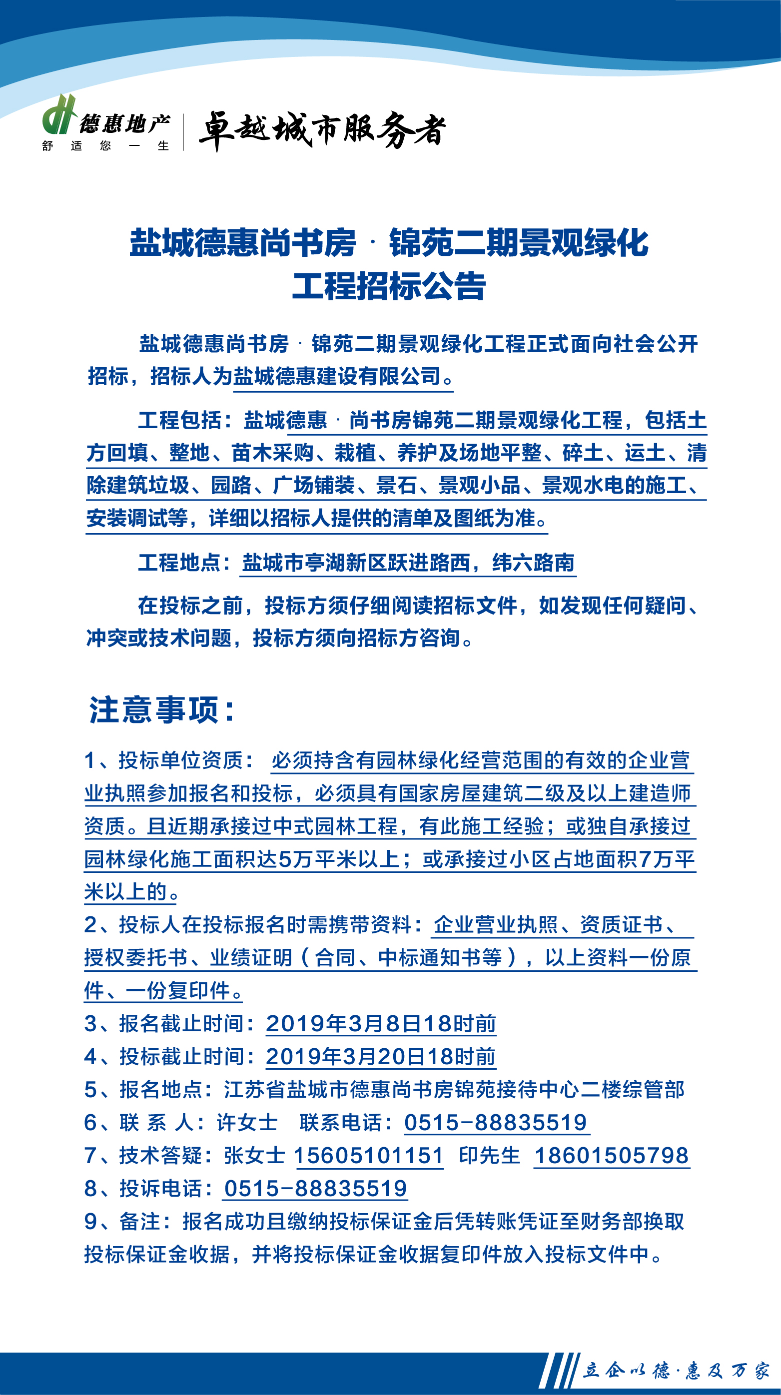 鹽城德惠尚書房·錦苑二期景觀綠化工程招標(biāo)公告