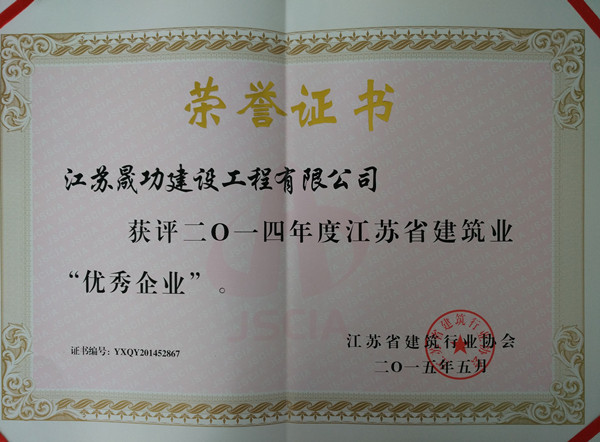 2015年7月19日,晟功集團(tuán)獲評“二〇一四年度省建筑業(yè)優(yōu)秀企業(yè)”! |