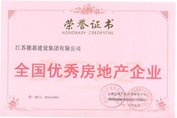 2010年9月,江蘇德惠建設(shè)集團(tuán)有限公司全國優(yōu)秀房地產(chǎn)企業(yè)