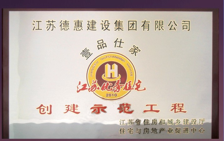 2010年,江蘇德惠建設集團有限公司 壹品仕家 江蘇優(yōu)秀住宅 創(chuàng)建示范工程