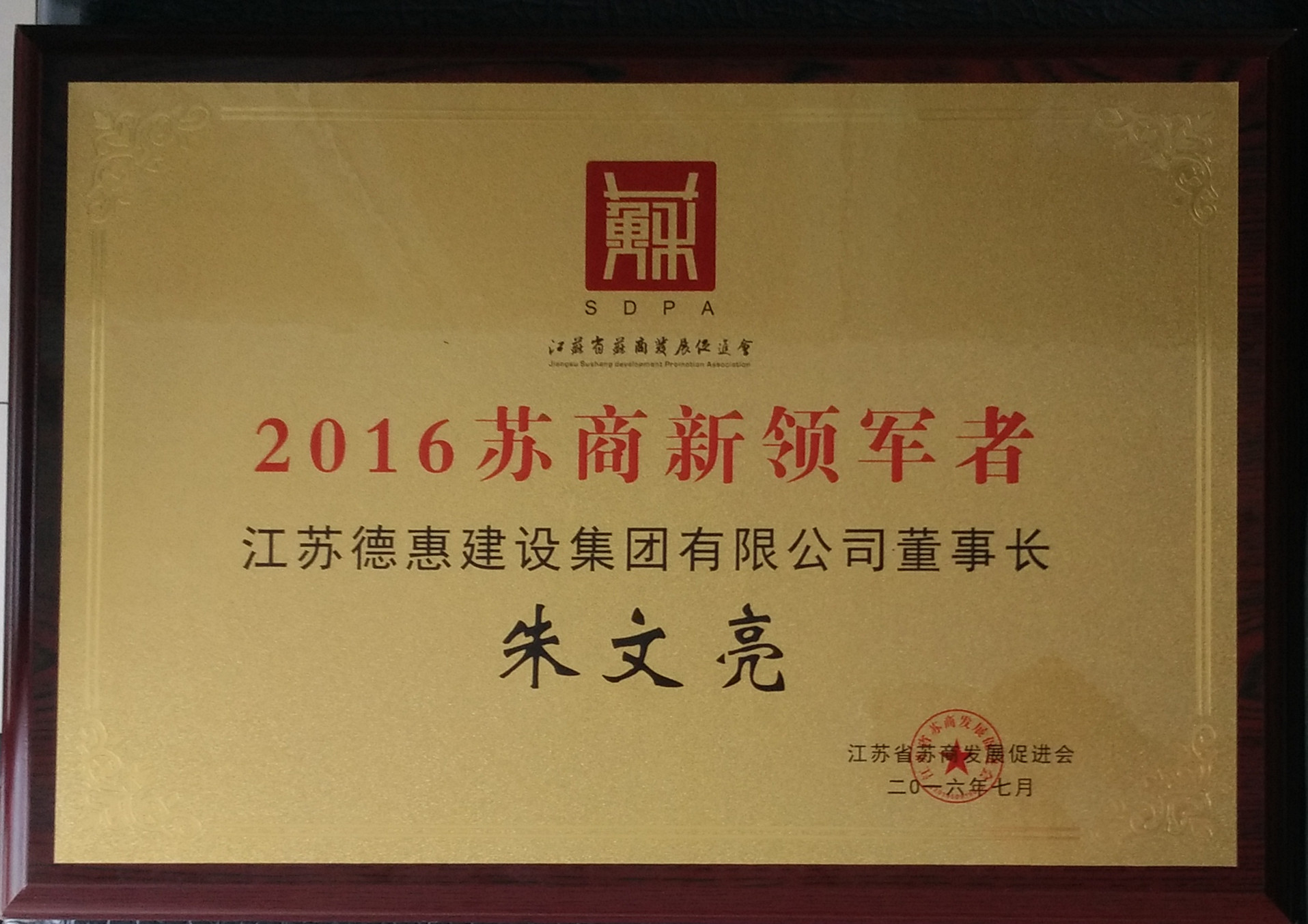2016年7月9日,朱文亮董事長(zhǎng)榮獲“2016蘇商新領(lǐng)軍者”稱號(hào)! |