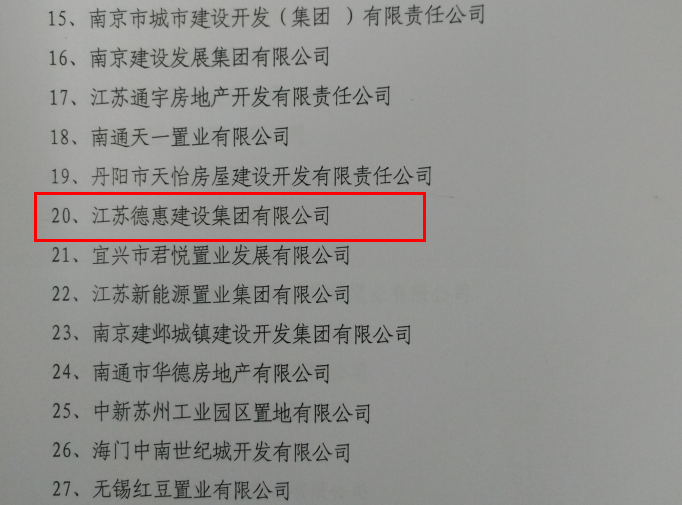 2016年7月10日,江蘇德惠集團躋身江蘇省開發(fā)企業(yè)20強! |