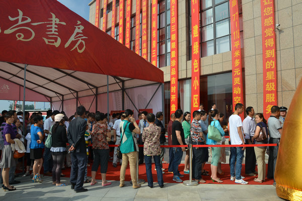 6月29日,烈日當(dāng)空,阜寧城南新區(qū)德惠·尚書房售樓中心人潮涌動(dòng)。德惠·尚書房三期112套稀缺房源火爆開搶。