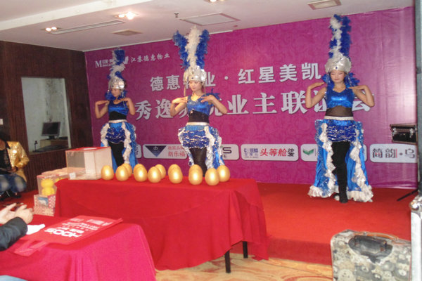 12月21日晚,江蘇德惠物業(yè)管理有限公司連云港分公司攜手“中國家居第一品牌”紅星美凱龍集團在連云港明珠大酒店舉辦了秀逸蘇杭業(yè)主聯(lián)誼會。 臺下座無虛席 為提高聯(lián)誼會的藝術(shù)水平,主辦方特邀專業(yè)節(jié)目主持人、藝術(shù)人員為整場晚會錦上添花。柔美的舞姿、深情的演唱、震撼的變臉等節(jié)目,掀起晚會現(xiàn)場一輪又一輪的高潮,掌聲雷鳴,精彩不斷,深受廣大業(yè)主、客戶朋友們的大力追捧。晚會期間,穿插了抽獎、砸金蛋等游戲,融入了德惠集團和德惠物業(yè)的品牌宣傳,豐富了小區(qū)業(yè)主文娛生活,方便了業(yè)主與業(yè)主間的相互溝通,更增進了物業(yè)公司與業(yè)主間的情感交流。 |