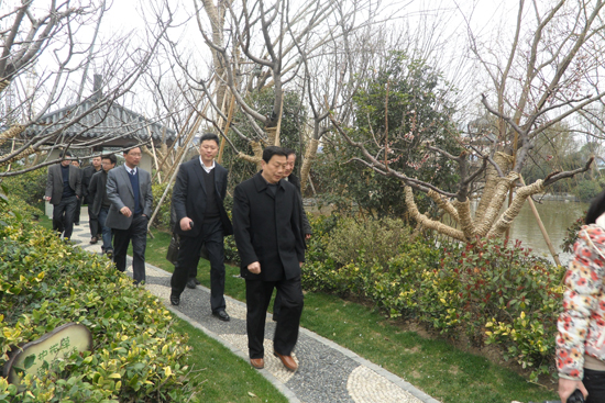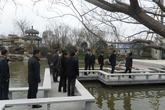 3月28日,阜寧縣住建局局長宗光華率領(lǐng)住建局主要領(lǐng)導(dǎo)、人民評(píng)議員考察團(tuán)蒞臨德惠·尚書房中央園林景觀區(qū)指導(dǎo)建設(shè)工作。江蘇德惠集團(tuán)副總經(jīng)理孫曉莉陪同視察,并介紹尚書房園區(qū)景觀綠化建設(shè)情況。