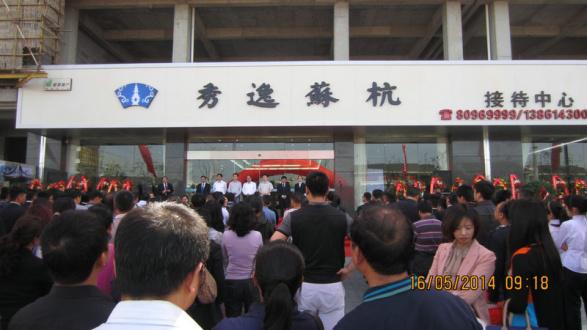 2014年5月16日,由江蘇德惠集團開發(fā)的項目德惠· 秀逸蘇杭新接待中心隆重開業(yè)。德惠集團朱文亮董事長攜集團部分高層領導集體亮相,參加慶典的還有綠源、晟功、樁基、裝飾、綠化等各分公司代表,以及前來觀禮的新老業(yè)主們。本次慶典還有幸邀請到了連云港市農行和市監(jiān)理公司的部分領導。 接待中心現(xiàn)場吸引了大批客戶,人頭攢動、熱鬧非凡。上午9點18分德惠集團黨支部書記沈凱明宣布德惠·秀逸蘇杭新接待中心正式開業(yè)。
