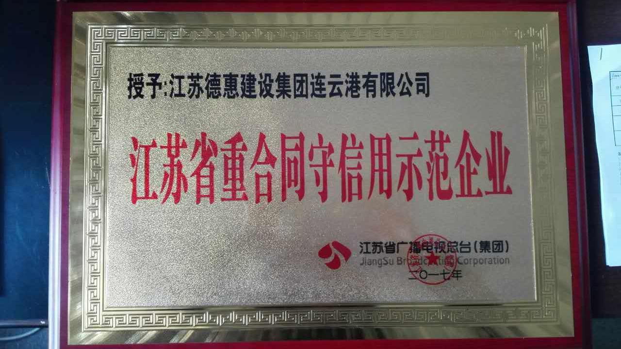 熱烈祝賀江蘇德惠建設(shè)集團(tuán)連云港有限公司被評為“江蘇省重合同守信用示范企業(yè)”!