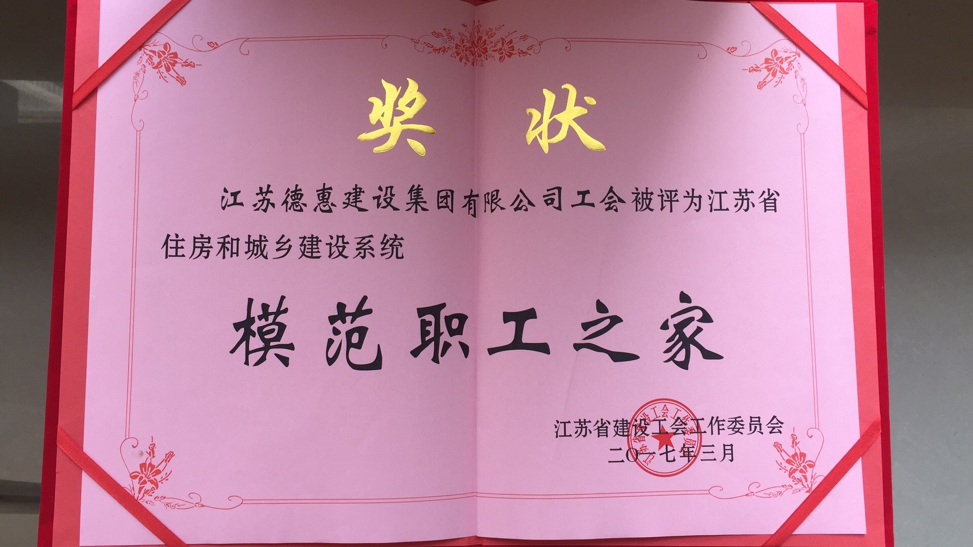 熱烈祝賀江蘇德惠建設集團有限公司工會被評為江蘇省住房和城鄉(xiāng)建設系統(tǒng)“模范職工之家”榮譽稱號?。。?/h1>