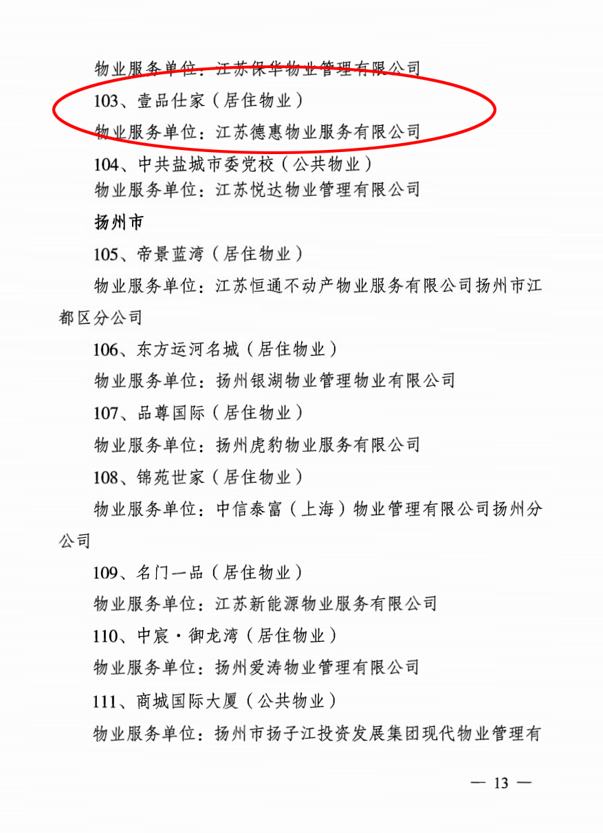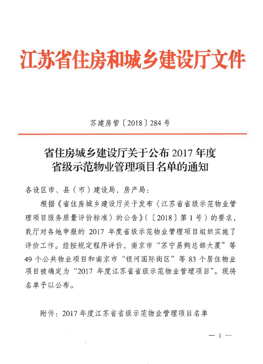 近日, 江蘇省住房和城鄉(xiāng)建設(shè)廳發(fā)布284號文公布了2017年度江蘇省省級示范物業(yè)管理項目名單,鹽城市阜寧縣德惠·壹品仕家榜上有名。多年來,江蘇德惠物業(yè)服務(wù)有限公司一直秉承“讓生活更舒適”的服務(wù)宗旨,從每一個細(xì)微處出發(fā),為客戶打造舒適的品質(zhì)生活。獲此殊榮,寓意著德惠物業(yè)將朝著更高的臺階邁進(jìn)! 壹品仕家小區(qū)被評為“2017度省級示范物業(yè)管理項目”
