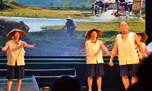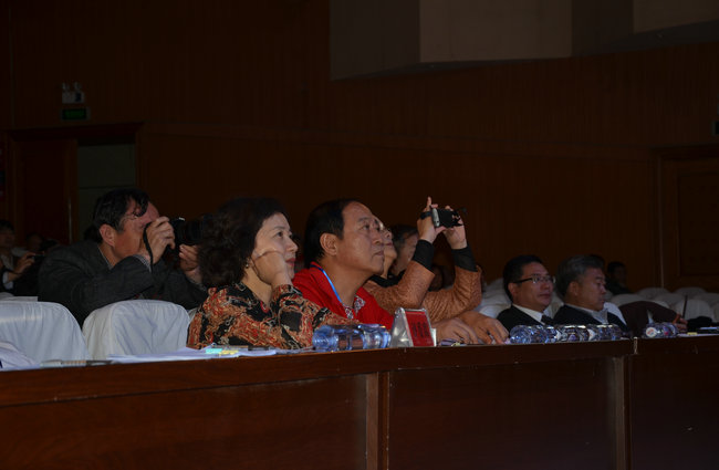5月17日,各地牛歌實力唱將齊聚阜寧,巔峰對決。大賽分為原生態(tài)牛歌(選手自演自唱,未經(jīng)人工雕琢,將現(xiàn)實版的牛耕場景搬上舞臺)、藝術(shù)牛歌(將傳統(tǒng)牛歌進(jìn)行藝術(shù)加工,形成完整的曲譜節(jié)拍)。賽事緊張激烈,盛況空前。臺上選手們競相角逐,臺下觀眾座無虛席,現(xiàn)場氣氛幾度被推向高潮。 省內(nèi)外代表隊巔峰對決 著名相聲小品藝術(shù)家、國家一級演員牛群在決賽現(xiàn)場 縣文廣新局副局長董振寧與臺胞們互贈禮品 巔峰對決 終見分曉