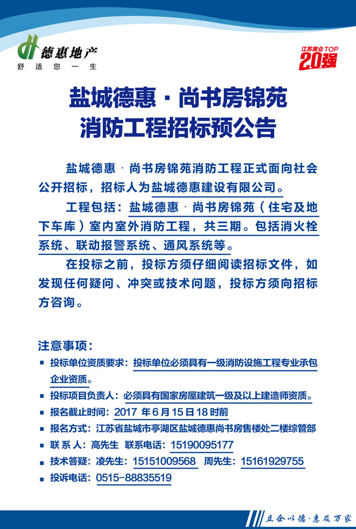 鹽城德惠•尚書房錦苑消防工程招標預(yù)公告